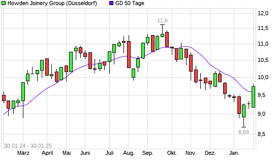 Mit dem Anstieg auf 9,70 EUR hat die Howden Joinery Group-Aktie am 29.01.2025 die 50-Tage-Linie nach oben gekreuzt.