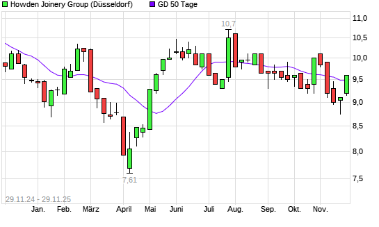 Mit dem Anstieg auf 9,65 EUR hat die Howden Joinery Group-Aktie am 28.11.2025 die 50-Tage-Linie nach oben gekreuzt.