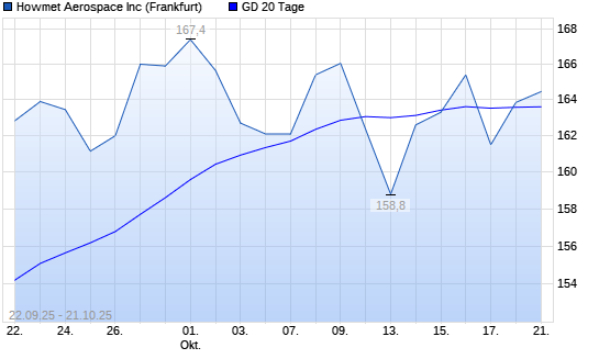 Mit dem Anstieg auf 163,85 EUR hat die Howmet Aerospace-Aktie am 20.10.2025 die 20-Tage-Linie nach oben gekreuzt.