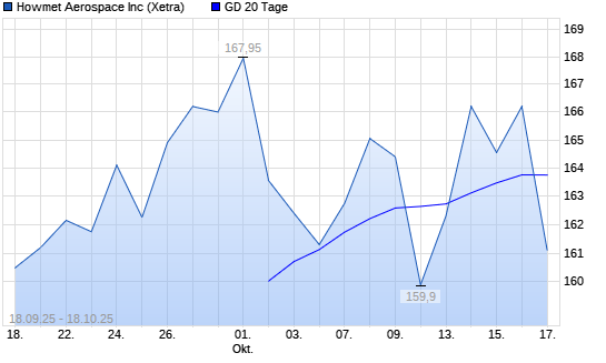 Mit dem Rücksetzer auf 161,50 EUR hat die Howmet Aerospace-Aktie am 17.10.2025 die 20-Tage-Linie nach unten gekreuzt.