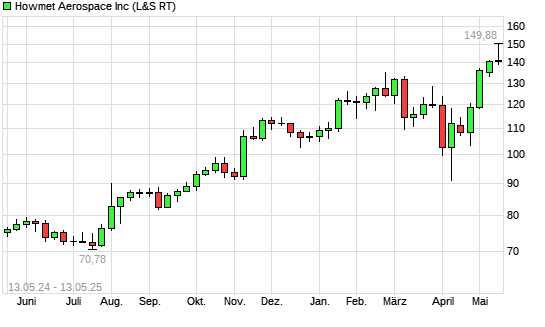 Mit dem Anstieg auf 142,20 EUR hat die Howmet Aerospace-Aktie (ISIN US4432011082) am 12.05.2025 ein neues All-Time-High erreicht und damit den Kurs vom 08.05.2025 eingestellt.Die Howmet Aerospace-Aktie ...weiterlesen