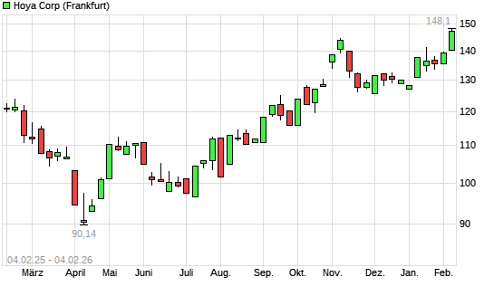 Mit dem Anstieg auf 148,05 EUR hat die Hoya-Aktie (ISIN JP3837800006) am 03.02.2026 ein neues 3-Jahres-Hoch erreicht und damit den Kurs vom 07.11.2025 eingestellt.
