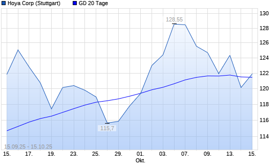 Mit dem Rücksetzer auf 119,65 EUR hat die Hoya-Aktie am 14.10.2025 die 20-Tage-Linie nach unten gekreuzt.