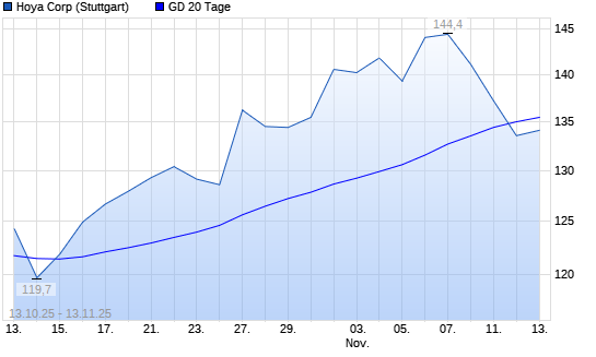 Mit dem Rücksetzer auf 134,95 EUR hat die Hoya-Aktie am 12.11.2025 die 20-Tage-Linie nach unten gekreuzt.