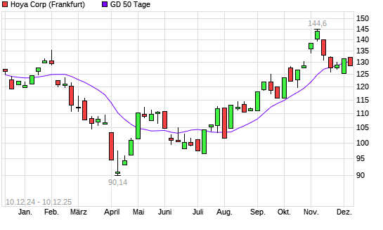 Mit dem Rücksetzer auf 129,55 EUR hat die Hoya-Aktie am 09.12.2025 die 50-Tage-Linie nach unten gekreuzt.