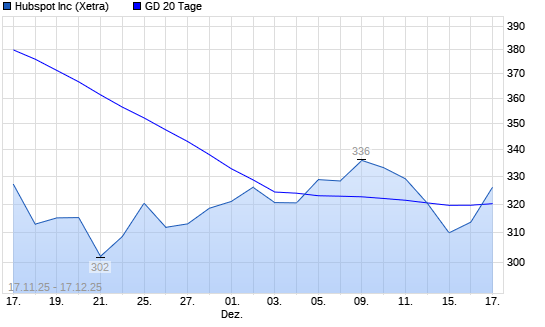 Mit dem Rücksetzer auf 306,60 EUR hat die HubSpot-Aktie am 16.12.2025 die 20-Tage-Linie nach unten gekreuzt.