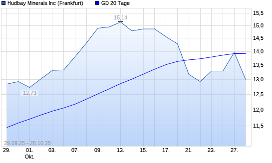 Mit dem Anstieg auf 13,97 EUR hat die Hudbay Minerals-Aktie am 27.10.2025 die 20-Tage-Linie nach oben gekreuzt.