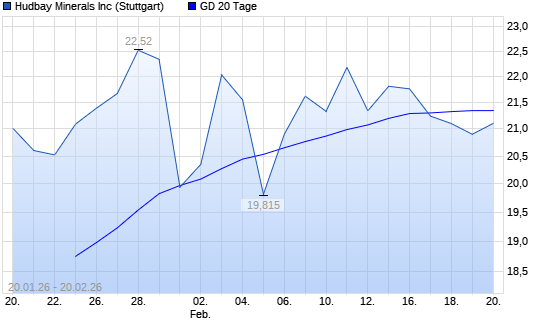Mit dem Rücksetzer auf 20,90 EUR hat die Hudbay Minerals-Aktie am 19.02.2026 die 20-Tage-Linie nach unten gekreuzt.