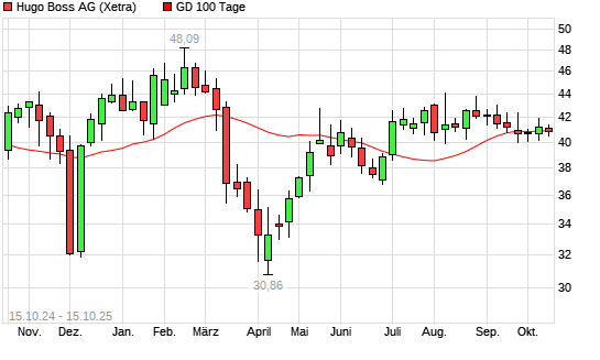 Mit dem Anstieg auf 41,50 EUR hat die Hugo Boss-Aktie am 14.10.2025 die 100-Tage-Linie nach oben gekreuzt.