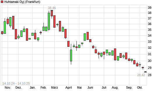 Mit dem Rücksetzer auf 28,48 EUR hat die Huhtamaeki-Aktie (ISIN FI0009000459) am 13.10.2025 ein neues 3-Jahres-Tief erreicht und damit den Kurs vom 23.08.2023 eingestellt.
