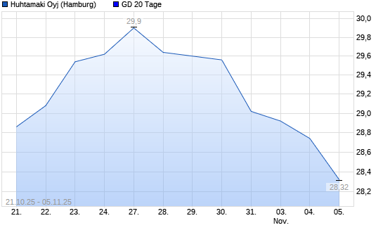 Mit dem Rücksetzer auf 28,62 EUR hat die Huhtamaeki-Aktie am 04.11.2025 die 20-Tage-Linie nach unten gekreuzt.