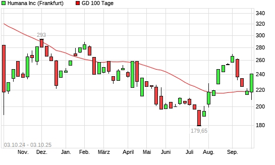 Mit dem Anstieg auf 218,90 EUR hat die Humana-Aktie am 02.10.2025 die 100-Tage-Linie nach oben gekreuzt.