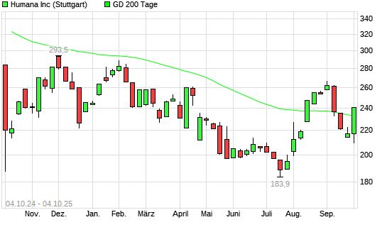 Mit dem Anstieg auf 241,20 EUR hat die Humana-Aktie am 03.10.2025 die 200-Tage-Linie nach oben gekreuzt.