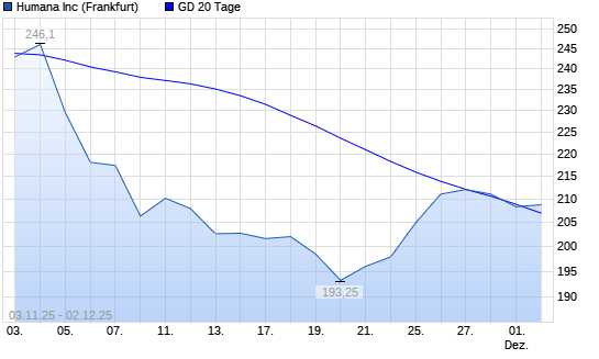 Mit dem Rücksetzer auf 208,40 EUR hat die Humana-Aktie am 01.12.2025 die 20-Tage-Linie nach unten gekreuzt.