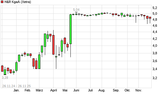 Mit dem Rücksetzer auf 4,18 EUR hat die H&R-Aktie (ISIN DE000A2E4T77) am 25.11.2025 ein neues 6-Monats-Tief erreicht und damit den Kurs vom 19.11.2025 eingestellt.