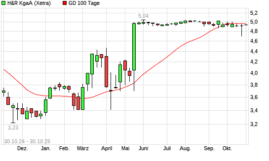 Mit dem Anstieg auf 4,93 EUR hat die H&R-Aktie am 29.10.2025 die 100-Tage-Linie nach oben gekreuzt.