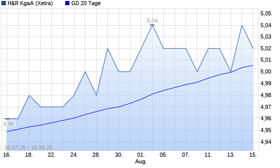 Mit dem Rücksetzer auf 4,93 EUR hat die H&R-Aktie am 15.08.2025 die 20-Tage-Linie nach unten gekreuzt.