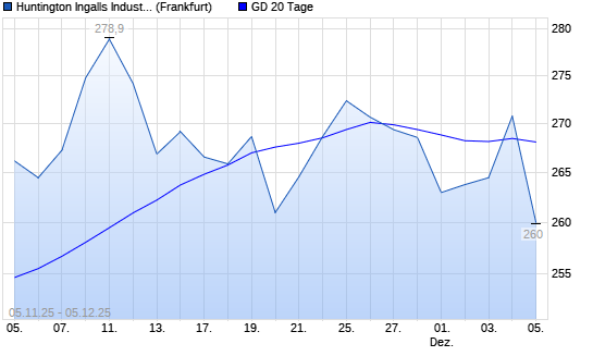Mit dem Anstieg auf 270,80 EUR hat die Huntington Ingalls-Aktie am 04.12.2025 die 20-Tage-Linie nach oben gekreuzt.