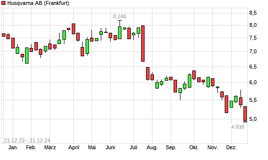 Mit dem Rücksetzer auf 4,95 EUR hat die Husqvarna-Aktie (ISIN SE0001662230) am 20.12.2024 ein neues 3-Jahres-Tief erreicht und damit den Kurs vom 19.12.2024 eingestellt.