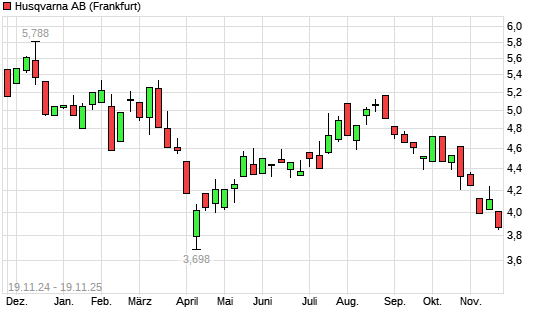 Mit dem Rücksetzer auf 3,87 EUR hat die Husqvarna-Aktie (ISIN SE0001662230) am 18.11.2025 ein neues 6-Monats-Tief erreicht und damit den Kurs vom 05.11.2025 eingestellt.