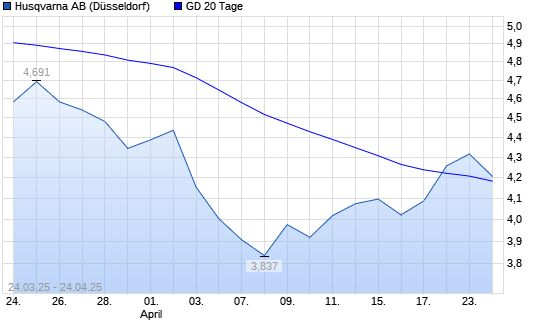 Mit dem Anstieg auf 4,30 EUR hat die Husqvarna-Aktie am 23.04.2025 die 20-Tage-Linie nach oben gekreuzt.