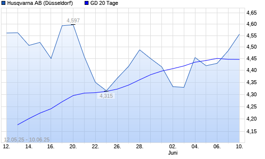 Mit dem Anstieg auf 4,49 EUR hat die Husqvarna-Aktie am 09.06.2025 die 20-Tage-Linie nach oben gekreuzt.