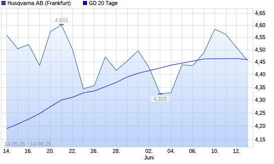 Mit dem Rücksetzer auf 4,46 EUR hat die Husqvarna-Aktie am 13.06.2025 die 20-Tage-Linie nach unten gekreuzt.