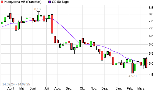 Mit dem Rücksetzer auf 4,88 EUR hat die Husqvarna-Aktie am 13.03.2025 die 50-Tage-Linie nach unten gekreuzt.