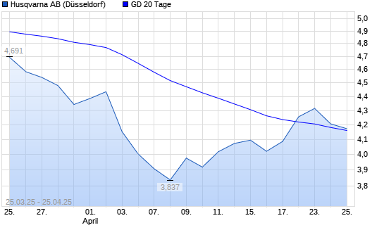 Mit dem Rücksetzer auf 4,00 EUR hat die Husqvarna-Aktie am 24.04.2025 die 20-Tage-Linie nach unten gekreuzt.Die Husqvarna-Aktie befindet sich seit dem 18.07.2024 im langfristigen Abwärtstrend ...weiterlesen
