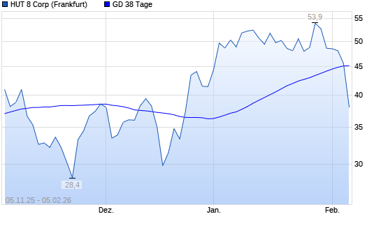 Mit dem Rücksetzer auf 45,60 EUR hat die Hut 8-Aktie am 04.02.2026 die 38-Tage-Linie nach unten gekreuzt.