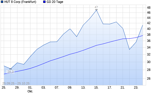 Mit dem Anstieg auf 41,30 EUR hat die Hut 8 Mining-Aktie am 24.10.2025 die 20-Tage-Linie nach oben gekreuzt.