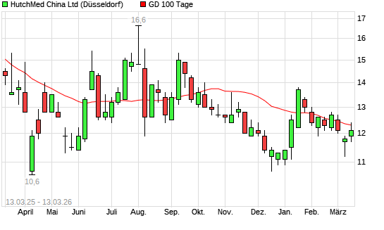 Mit dem Anstieg auf 12,20 EUR hat die Hutchison China MediTech Limited American Depositary Shares-Aktie am 12.03.2026 die 100-Tage-Linie nach oben gekreuzt.