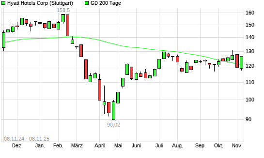 Mit dem Anstieg auf 126,30 EUR hat die Hyatt Hotels A-Aktie am 07.11.2025 die 200-Tage-Linie nach oben gekreuzt.