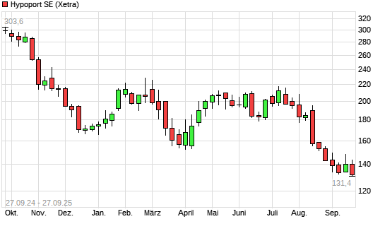 Mit dem Rücksetzer auf 132,00 EUR hat die Hypoport-Aktie (ISIN DE0005493365) am 26.09.2025 ein neues 12-Monats-Tief erreicht und damit den Kurs vom 25.09.2025 eingestellt.