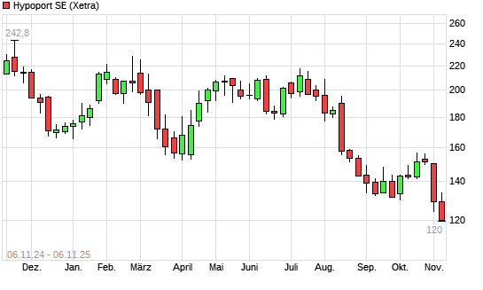 Mit dem Rücksetzer auf 122,00 EUR hat die Hypoport-Aktie (ISIN DE0005493365) am 05.11.2025 ein neues 12-Monats-Tief erreicht und damit den Kurs vom 04.11.2025 eingestellt.