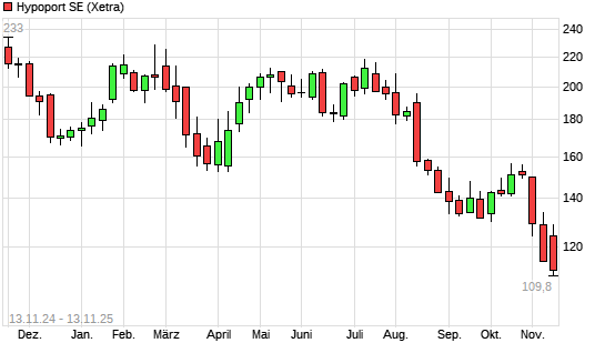 Mit dem Rücksetzer auf 114,60 EUR hat die Hypoport-Aktie (ISIN DE0005493365) am 12.11.2025 ein neues 12-Monats-Tief erreicht und damit den Kurs vom 11.11.2025 eingestellt.