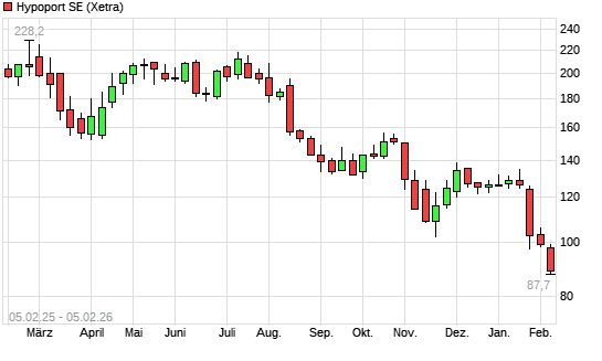 Mit dem Rücksetzer auf 88,90 EUR hat die Hypoport-Aktie (ISIN DE0005493365) am 04.02.2026 ein neues 3-Jahres-Tief erreicht und damit den Kurs vom 03.02.2026 eingestellt.