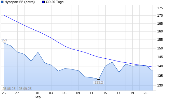 Mit dem Rücksetzer auf 138,40 EUR hat die Hypoport-Aktie am 24.09.2025 die 20-Tage-Linie nach unten gekreuzt.