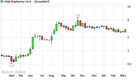 Mit dem Rücksetzer auf 2,62 EUR hat die I-MAB SPONS.ADS-Aktie (ISIN US44975P1030) am 05.03.2026 ein neues 6-Monats-Tief erreicht und damit den Kurs vom 16.02.2026 eingestellt.