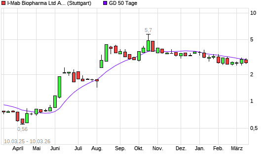 Mit dem Rücksetzer auf 2,96 EUR hat die I-MAB SPONS.ADS-Aktie am 09.03.2026 die 50-Tage-Linie nach unten gekreuzt.