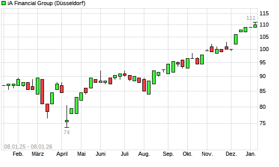 Mit dem Anstieg auf 112,00 EUR hat die IA Financial-Aktie (ISIN CA45075E1043) am 07.01.2026 ein neues All-Time-High erreicht und damit den Kurs vom 06.01.2026 eingestellt.
