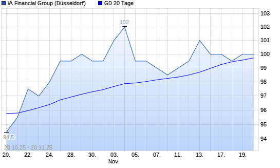 Mit dem Anstieg auf 101,00 EUR hat die IA Financial-Aktie am 19.11.2025 die 20-Tage-Linie nach oben gekreuzt.