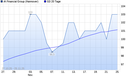 Mit dem Anstieg auf 102,00 EUR hat die IA Financial-Aktie am 24.11.2025 die 20-Tage-Linie nach oben gekreuzt.