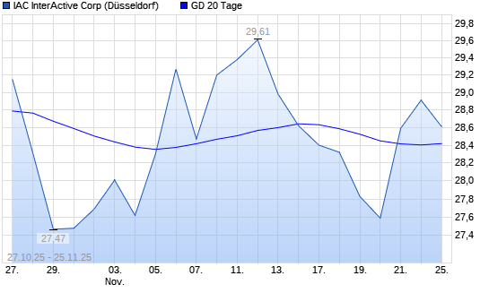 Mit dem Anstieg auf 28,44 EUR hat die IAC InterActiveCorp-Aktie am 24.11.2025 die 20-Tage-Linie nach oben gekreuzt.