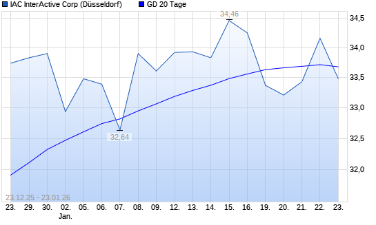 Mit dem Anstieg auf 33,78 EUR hat die IAC InterActiveCorp-Aktie am 22.01.2026 die 20-Tage-Linie nach oben gekreuzt.