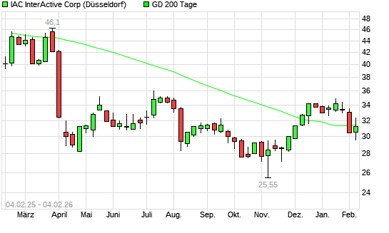 Mit dem Anstieg auf 31,59 EUR hat die IAC InterActiveCorp-Aktie am 03.02.2026 die 200-Tage-Linie nach oben gekreuzt.