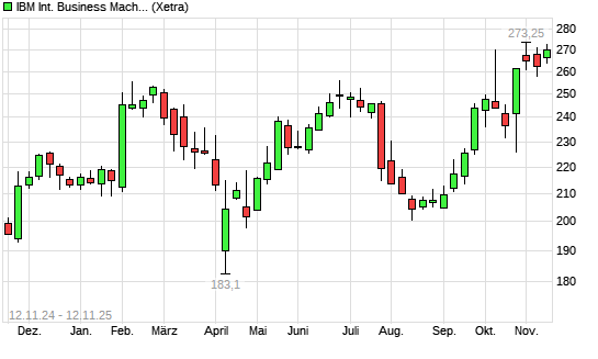 Mit dem Anstieg auf 271,00 EUR hat die IBM-Aktie (ISIN US4592001014) am 11.11.2025 ein neues All-Time-High erreicht und damit den Kurs vom 28.10.2025 eingestellt.
