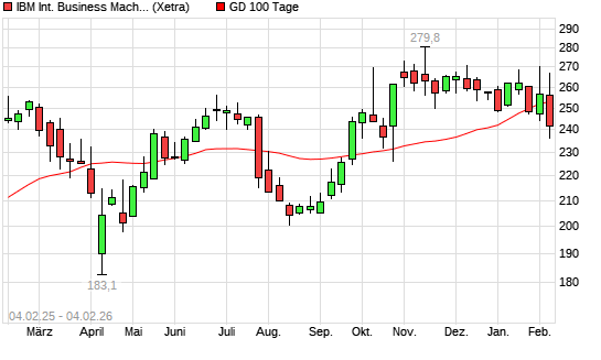 Mit dem Rücksetzer auf 249,45 EUR hat die IBM-Aktie am 03.02.2026 die 100-Tage-Linie nach unten gekreuzt.