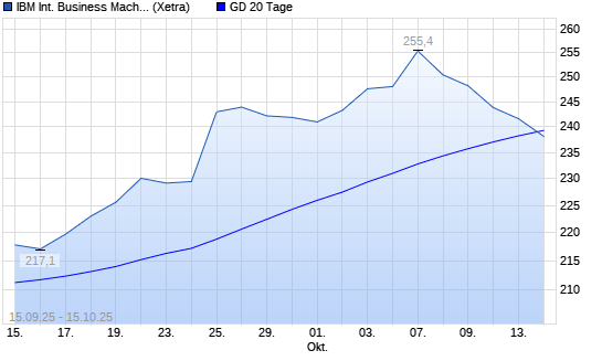 Mit dem Rücksetzer auf 238,55 EUR hat die IBM-Aktie am 14.10.2025 die 20-Tage-Linie nach unten gekreuzt.