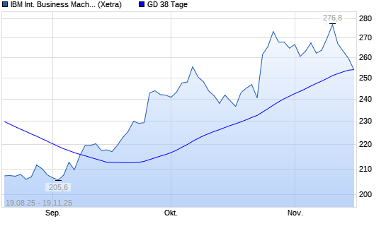 Mit dem Rücksetzer auf 251,00 EUR hat die IBM-Aktie am 18.11.2025 die 38-Tage-Linie nach unten gekreuzt.